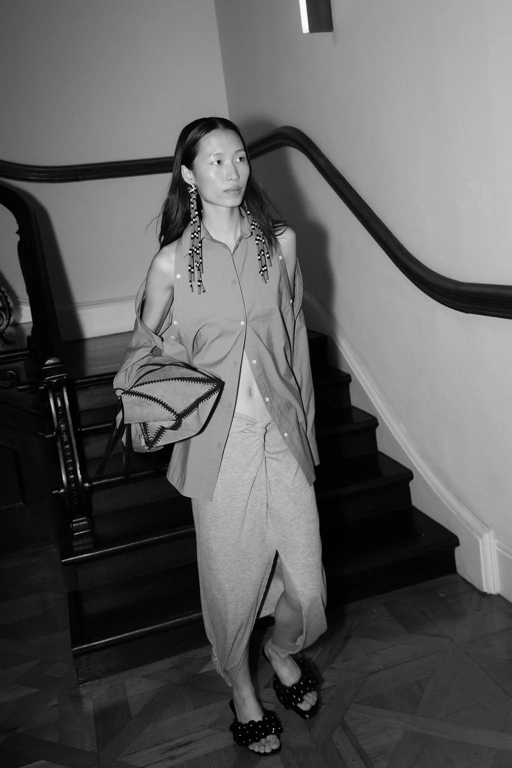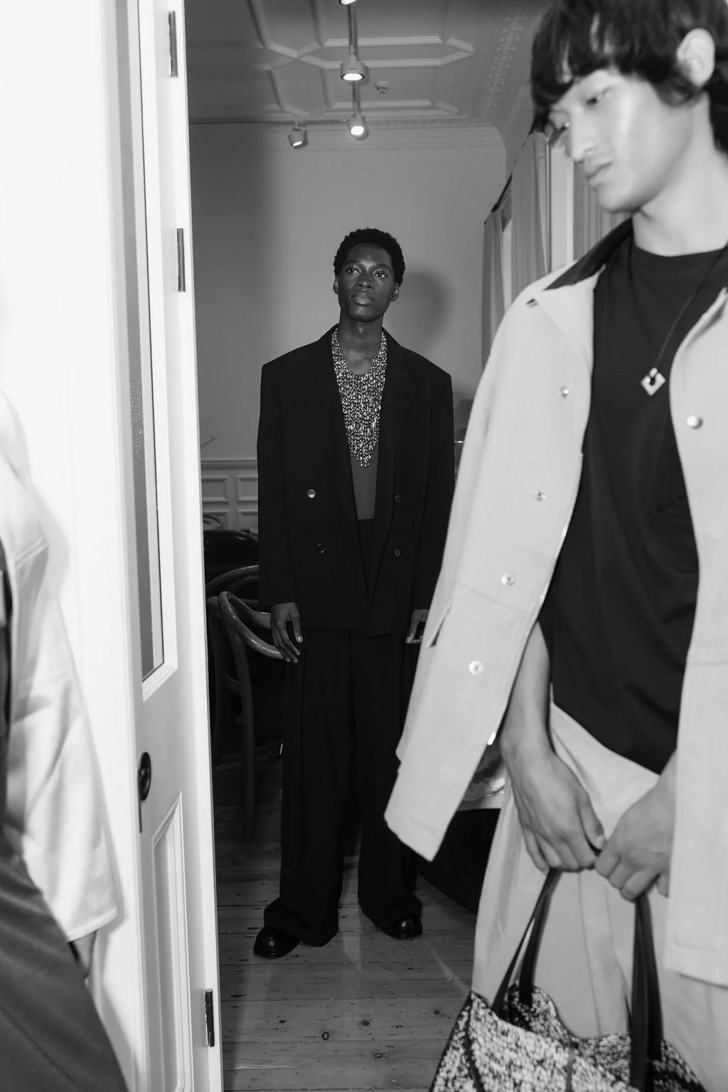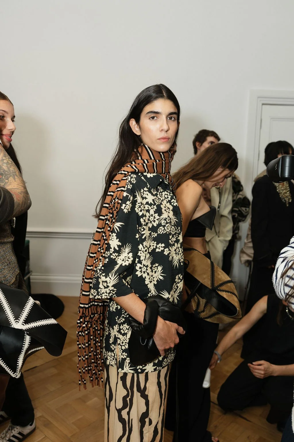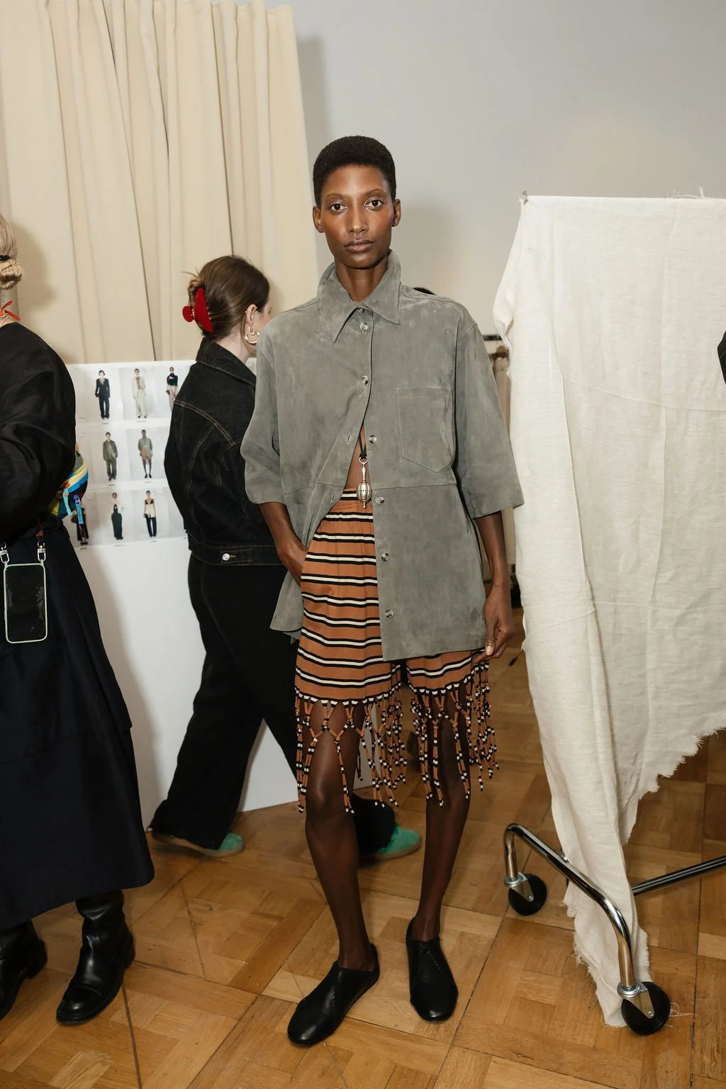 I recently spent time in London, and happened to be in town for the Nanushka Spring Summer 2026 show and got the opportunity to shoot backstage. Models adorned the white walls of The Lavery, wearing custom prints and stripes.